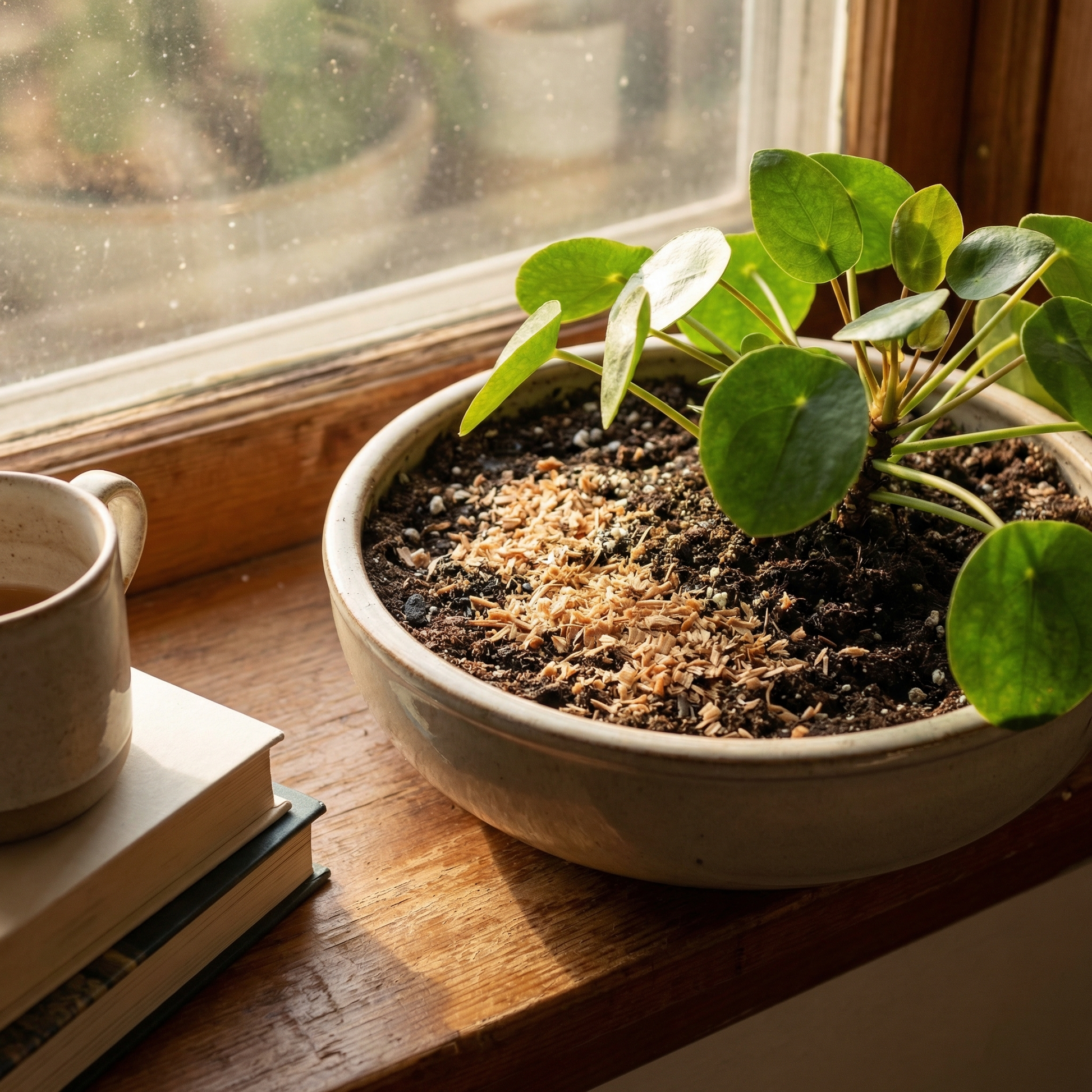Refresh annually — cedar chips last longer than regular mulch